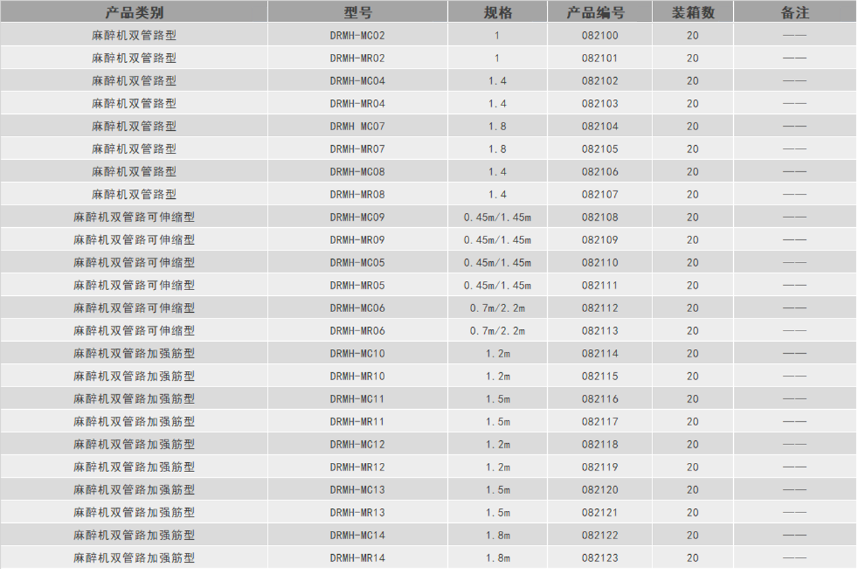 產(chǎn)品提供各式不同長度與規(guī)格的麻醉管路,標準接口可配套麻醉機使用。彈性好,柔軟透明,氣密性好。