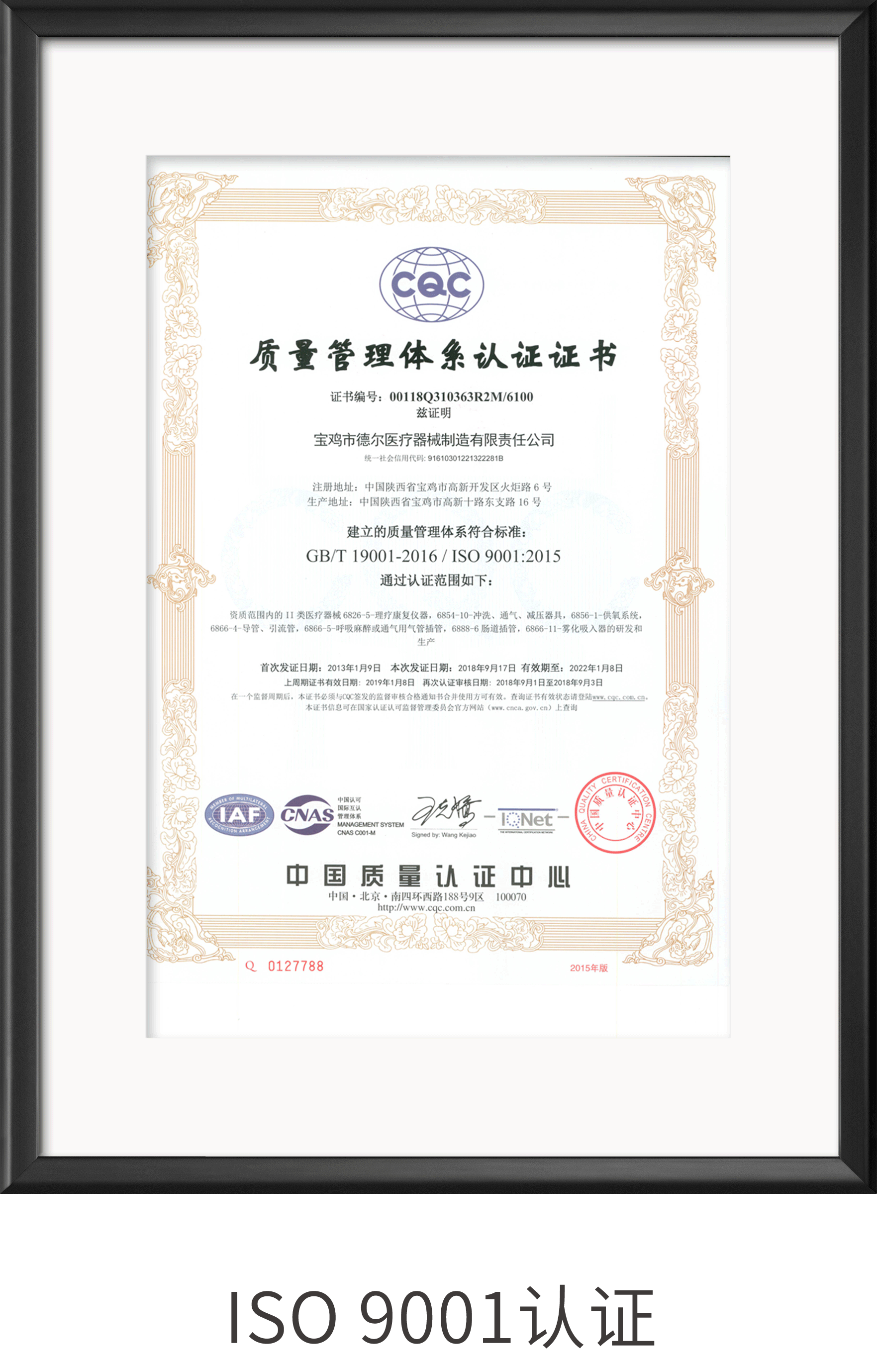 德爾醫(yī)械,創(chuàng)立于1996年,是專業(yè)從事吸引治療、氧治療、呼吸治療、重癥監(jiān)護領(lǐng)域醫(yī)療器械的研發(fā)與生產(chǎn)、推廣與教育的綜合性企業(yè)。總部位于中國寶雞,另有北京研發(fā)中心,是國家高新技術(shù)企業(yè)、國家級規(guī)模以上工業(yè)企業(yè)。擁有ISO9001認證、ISO13485認證、歐盟CE認證,22項實用新型專利、3項外觀設(shè)計專利等。因德爾醫(yī)械進入市場早、質(zhì)量好、種類齊全等優(yōu)勢,深受數(shù)萬家醫(yī)院的青睞。